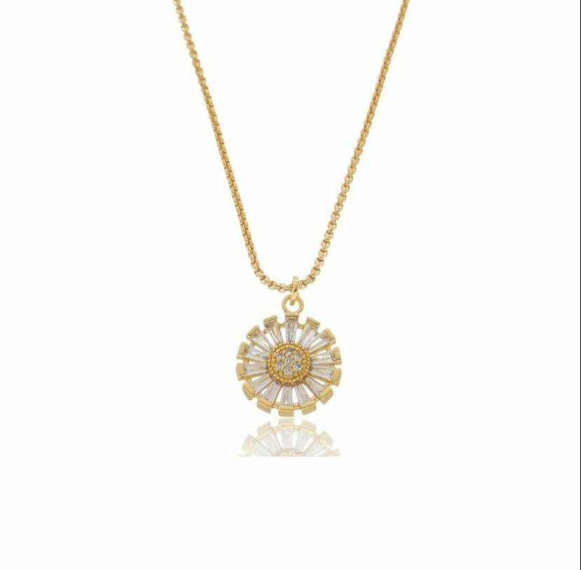 Colar com banho de ouro 18k, com pingente cravejado em zircônias no cristal.